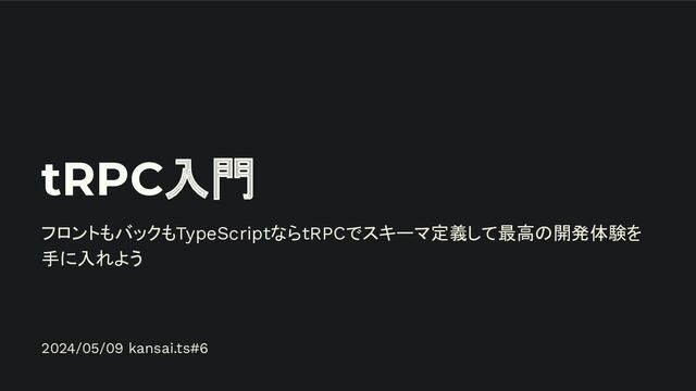 tRPC入門 フロントもバックもTypeScriptならtRPCでスキーマ定義して最高の開発体験を 手に入れよう 2024/05/09 kansai.ts#6