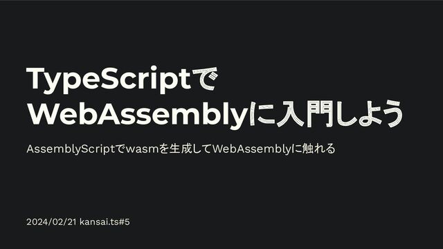 を試したいウェブ開発者にとって、 AssemblyScript は最良の選択肢になるでしょう。 AssemblyScript は TypeScript の厳密なバージョンを WebAssembly にコンパイルし、ウェブ開 発者は Prettier、ESLint、VS Code IntelliSense など、使い慣れた TypeScript 互換のツールを引き続き使用することができます。 https://developer.mozilla.org/ja/docs/WebAssembly/Concepts#as semblyscript_%E3%81%AE%E4%BD%BF%E7%94%A8