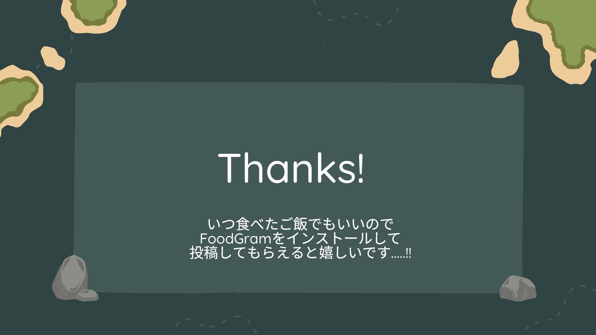 Thanks! いつ食べたご飯でもいいので FoodGram をインストールして 投稿してもらえると嬉しいです.....!!