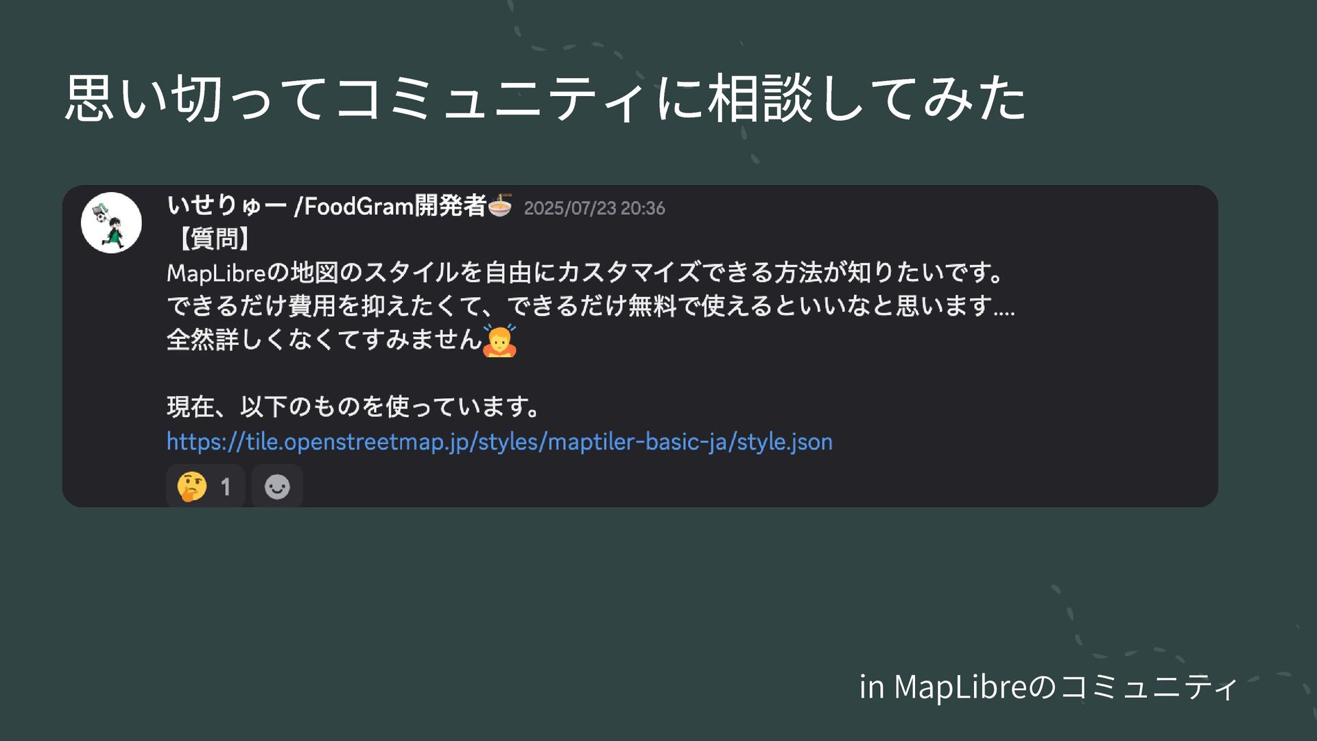 思い切ってコミュニティに相談してみた in MapLibreのコミュニティ