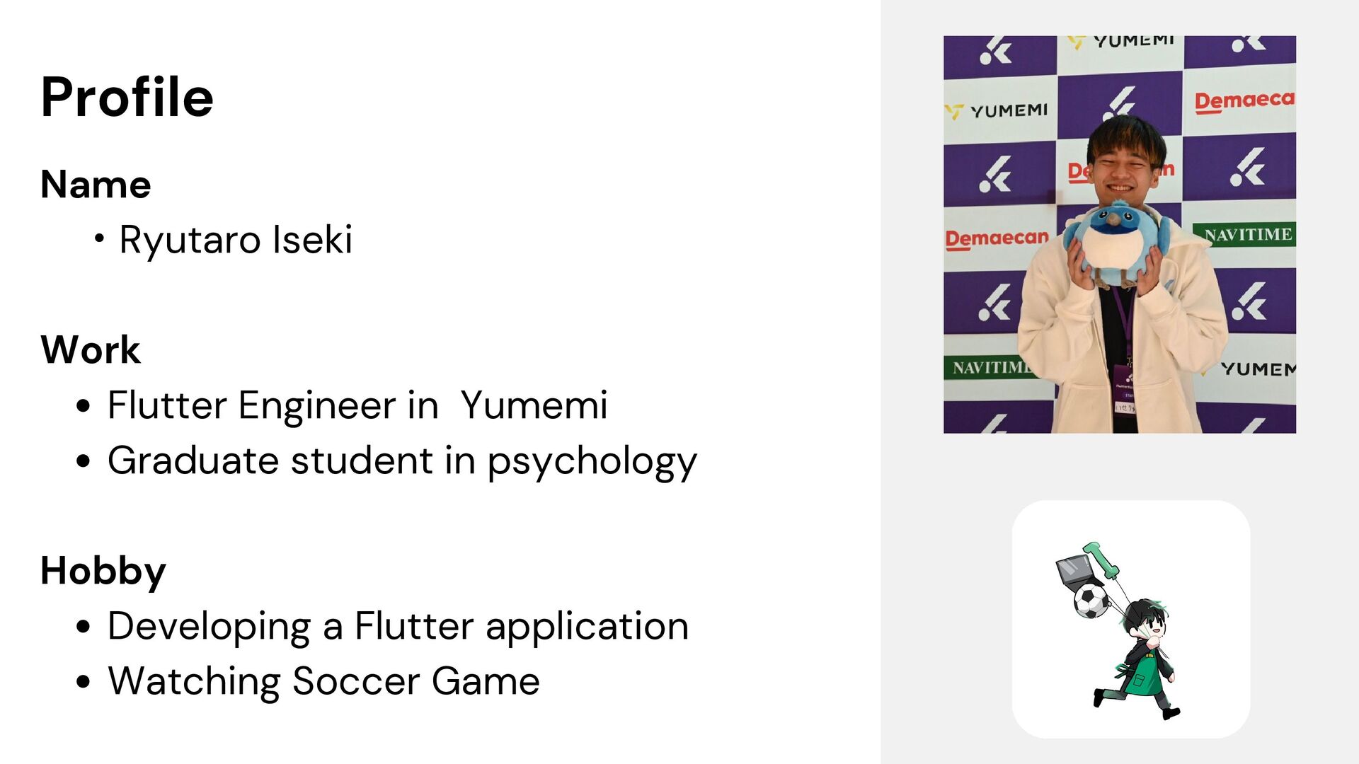 Name ・Ryutaro Iseki Work Flutter Engineer in Yumemi Graduate student