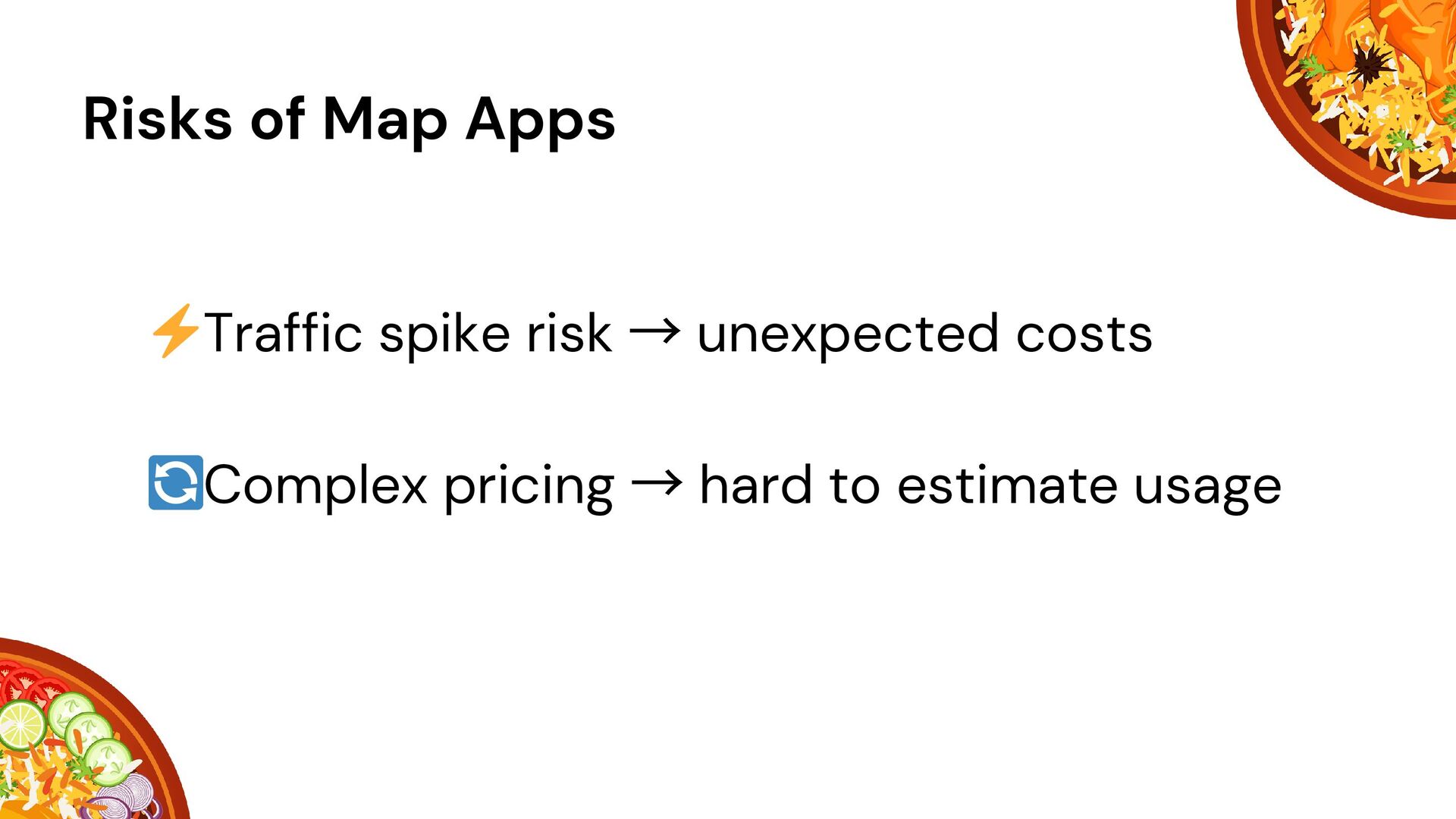 Risks of Map Apps ⚡Traffic spike risk → unexpected costs