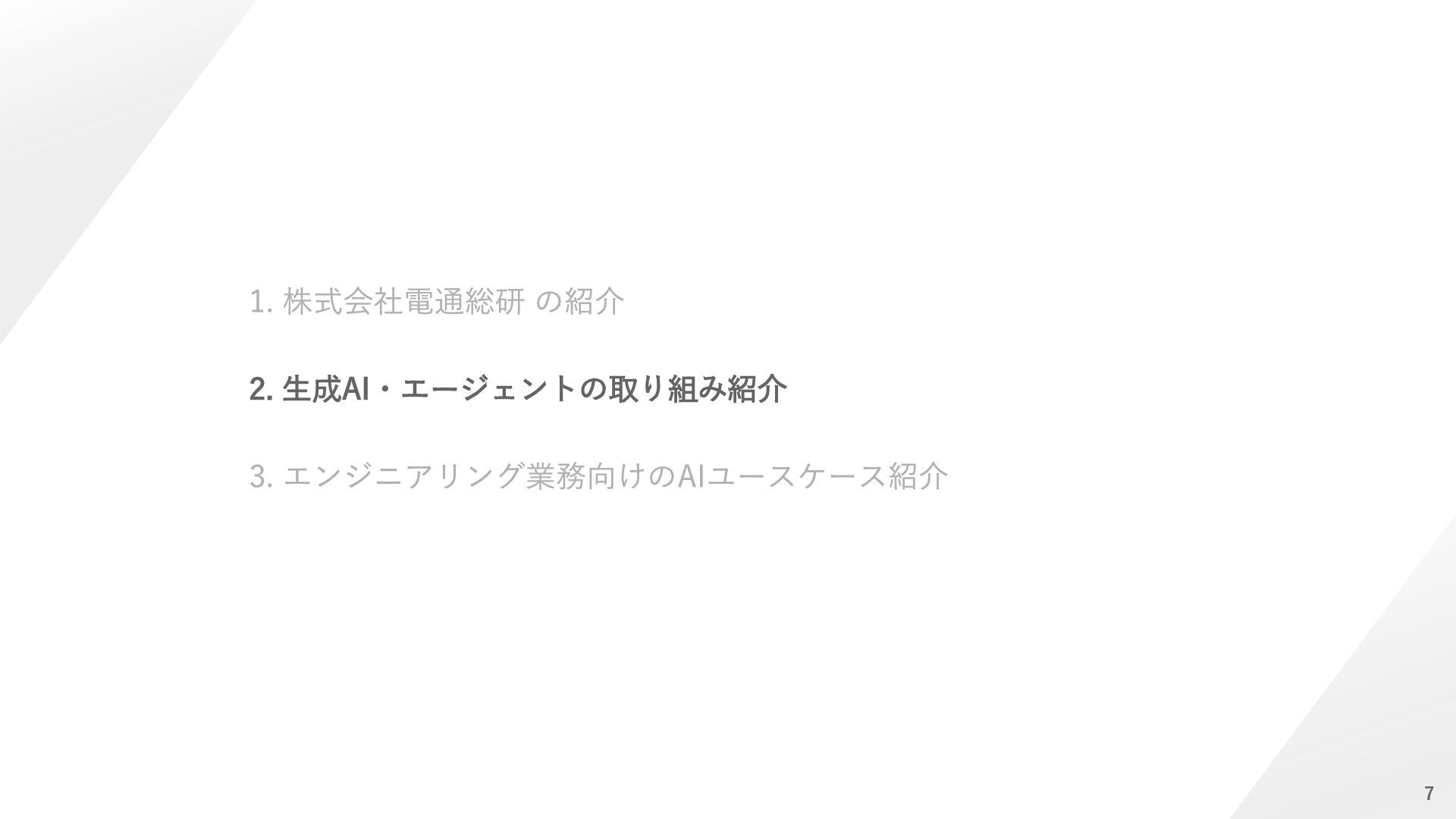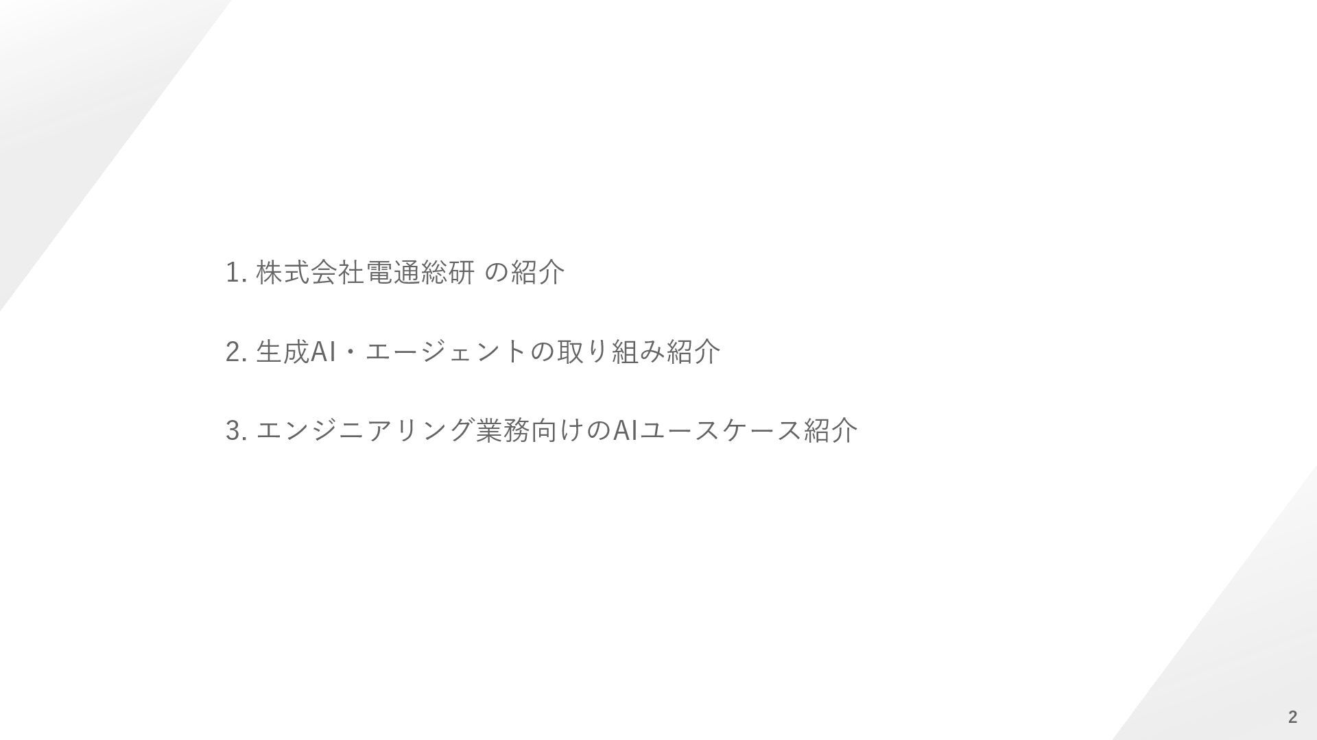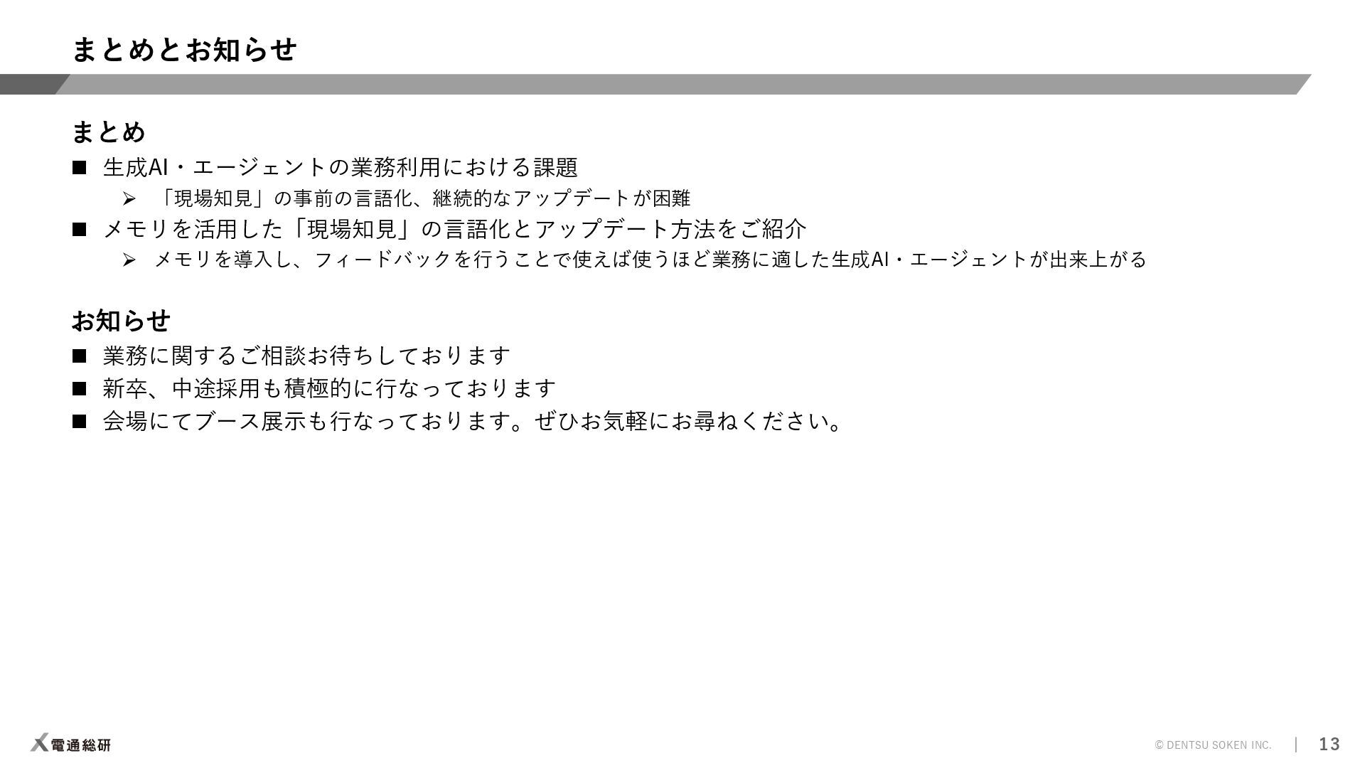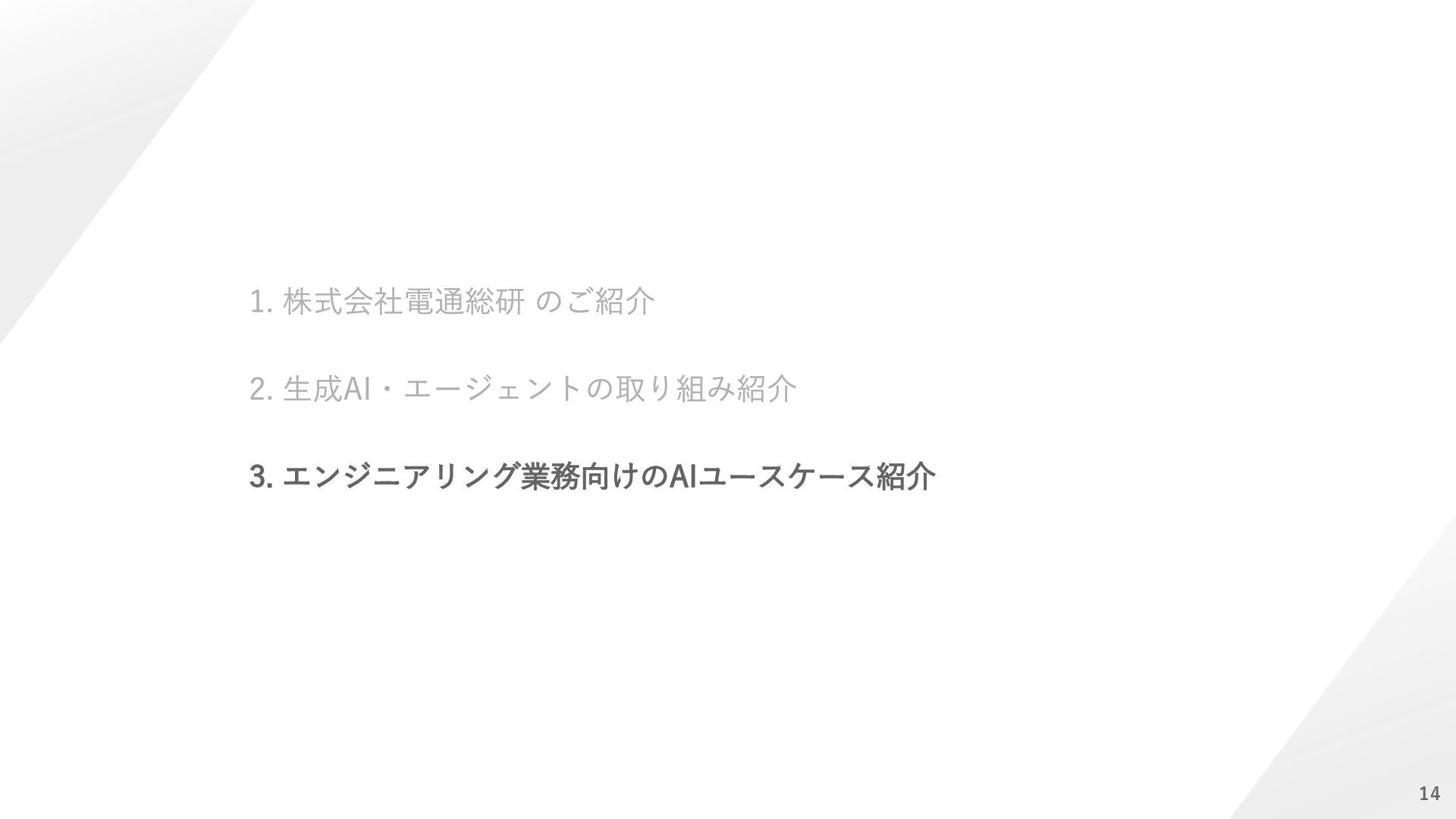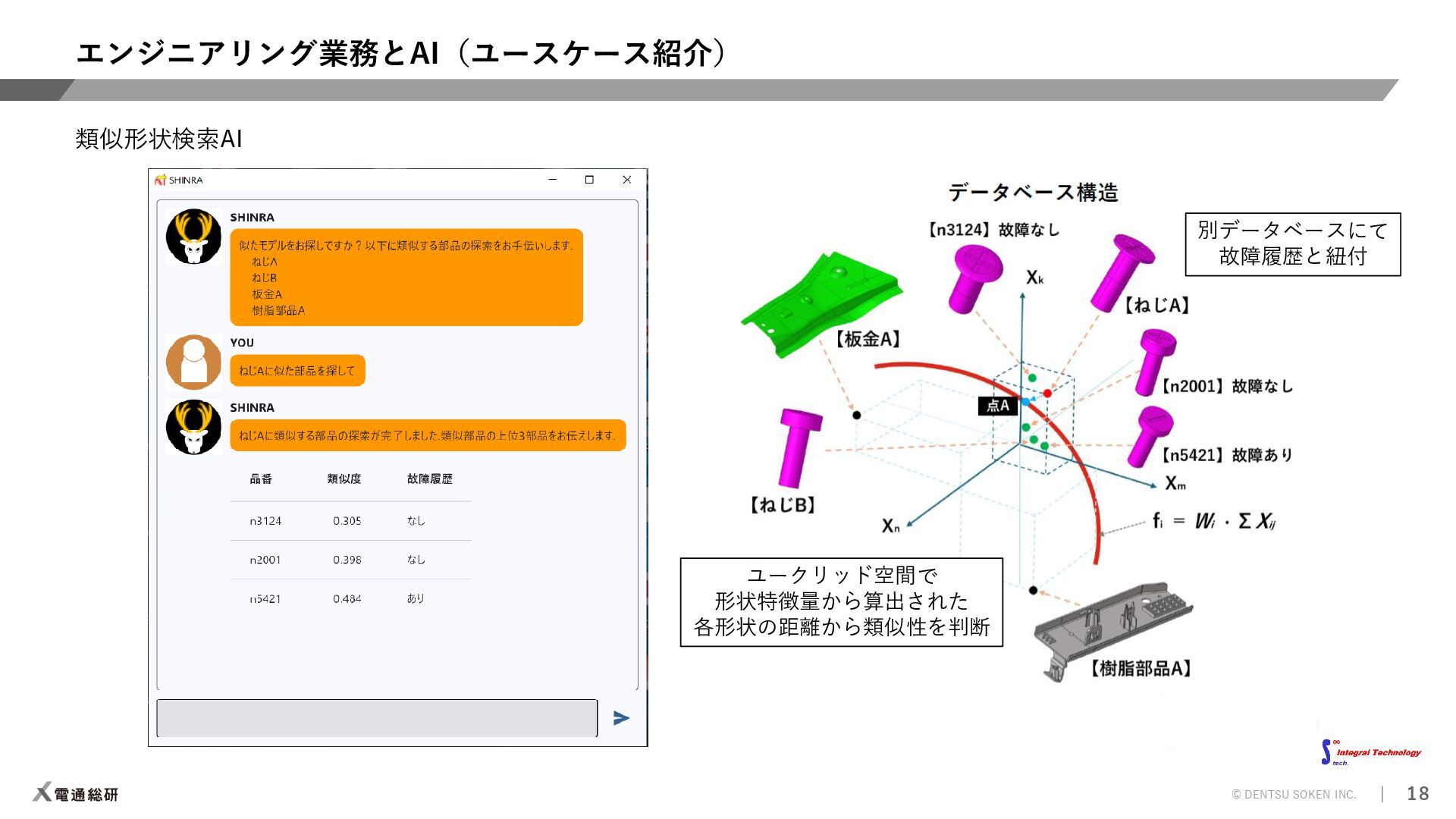 ⇒解析プリポストAI 【ソルバー】計算時間の短縮 ⇒CAEサロゲートモデル 【ポスト】解析結果判断の平準化/自動化 ⇒解析プリポストAI 人間の感覚(HMI)の定量化 ⇒官能(HMI)評価AI 設計検討の抜け漏れ防止 ⇒ナレッジ検索AI AI教師データの不足 ⇒データ&プロセス管理 知見の活用と今後の蓄積 ⇒生成AI/要約AI(GPT) 効率的な形状検討 ⇒形状生成AI 着目現象のメカニズム解明 ⇒因果分析AI 実験評価の簡素/代替化 ⇒官能評価AI 評価検証 実験評価 設計 自動設計 ⇒Generative Design 解析評価 設計案作成 制御則の設計 ⇒メカ×制御AI 過去の設計資産の活用 ⇒類似形状検索AI 解析効率化 ⇒自動メッシュAI モデルがない検討強化 ⇒1DCAE×AI お客様の課題 ⇒提案可能なソリューション 凡例