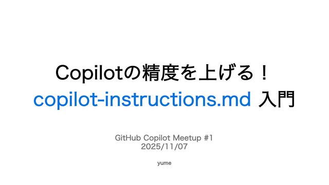 2025/11/07 GitHub Copilot Meetup Japan #1 の登壇資料です。
