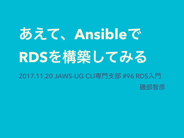 ͋͑ͯɺAnsibleͰ RDSΛߏஙͯ͠ΈΔ 2017.11.20 JAWS-UG CLIઐࢧ෦ #96 RDSೖ ү෦ஐ