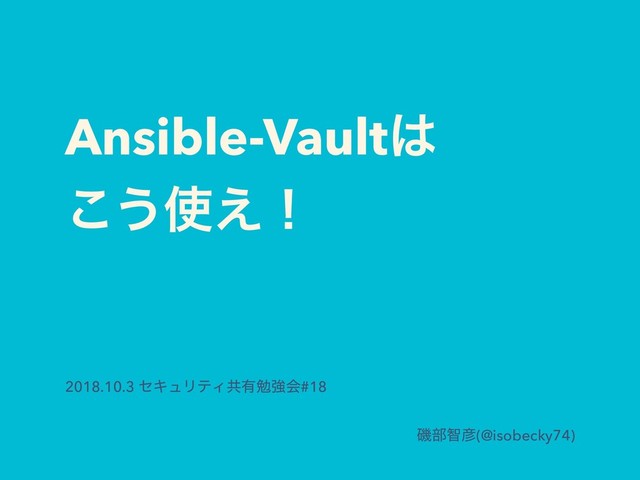 Ansible-Vault ͜͏͑ʂ 2018.10.3 ηΩϡϦςΟڞ༗ษڧձ#18 ү෦ஐ(@isobecky74)