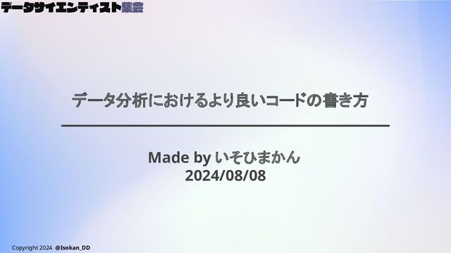Copyright 2024 @Isokan_DD データ分析におけるより良いコードの書き方 Made by いそひまかん 2024/08/08