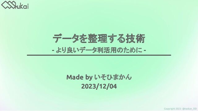 本スライドは以下の対象者に向け、データ整理の重要性とデータ分析に生かせる考え方を中心に取り上げて作成しました。 【対象】 - DXに興味があるor推進したい人 - データサイエンスに興味ある初学者、学生 - 社内データを活かしたいけど、どうしていいか分からない人