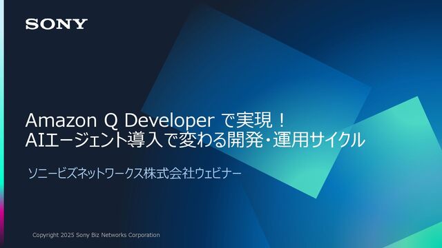 2025 Sony Biz Networks Corporation ⚫人間の介入なしに特定のタスクを実行する自律型システム ⚫与えられたタスクを解決する為に何が必要かを考え、実際に アクションを実行出来る ⚫2025年 3月中旬に、Amazon Q Developer for CLI として機能追加された