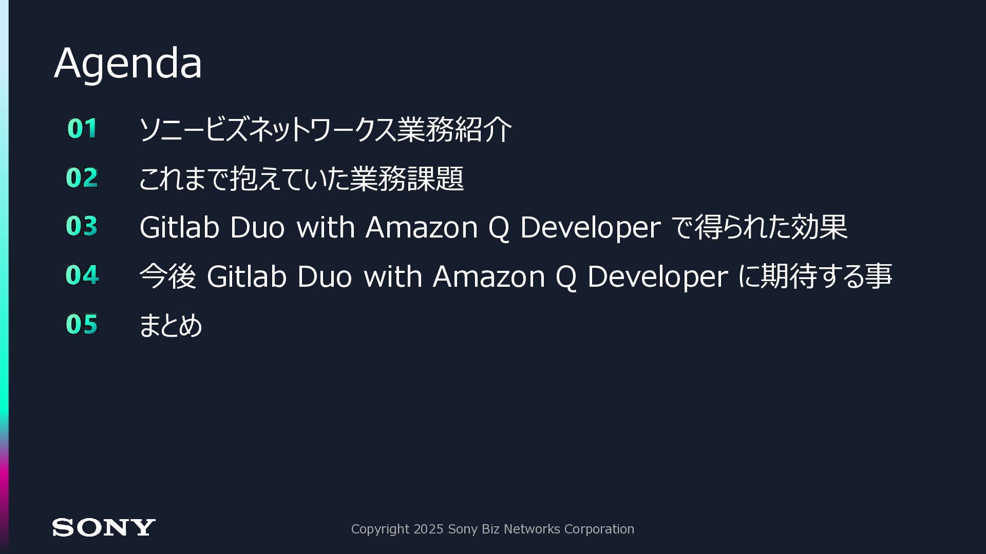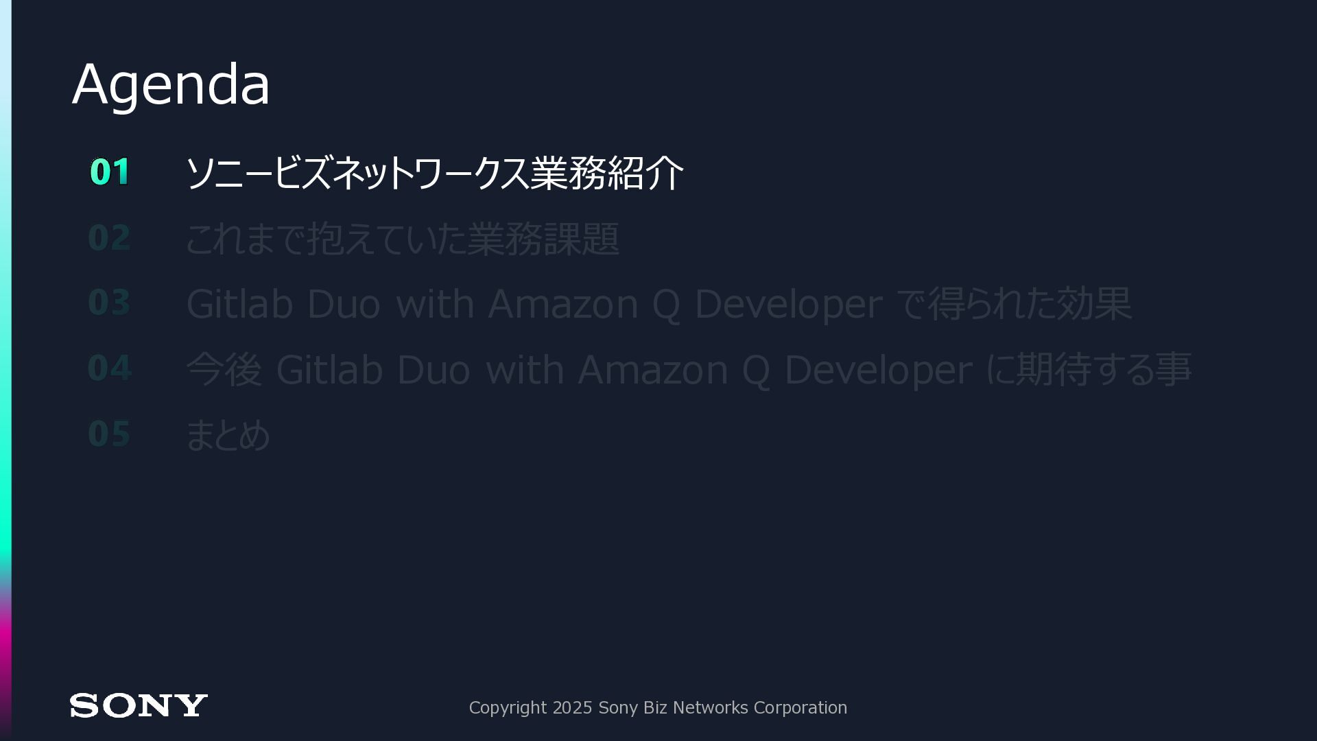 23. Agenda Copyright 2025 Sony Biz Networks Corporation 01 ソニービズネットワークス業務紹介 02