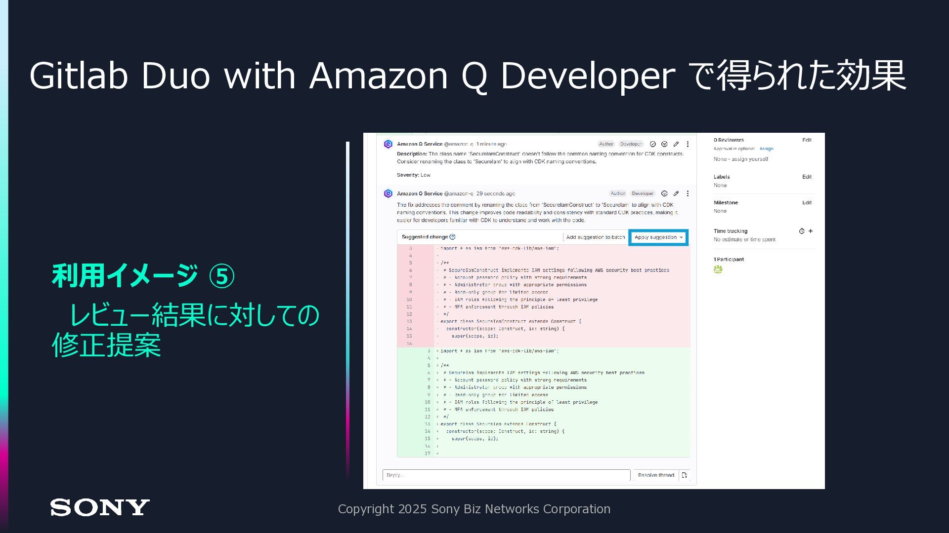 15. Gitlab Duo with Amazon Q Developer で得られた効果 Copyright 2025 Sony