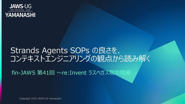 Strands Agents SOPs の良さを、 コンテキストエンジニアリングの観点から読み解く Copyright 2025 JAWS-UG Yamanashi fin-JAWS