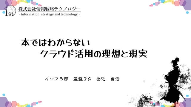 本ではわからない クラウド活用の理想と現実 インフラ部 基盤3G 金近 勇治