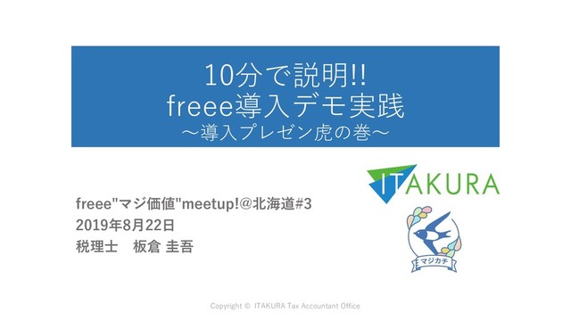 10分で説明!! freee導入デモ実践 ~導入プレゼン虎の巻~ freee"マジ価値"meetup!@北海道#3 2019年8月22日 税理士 板倉 圭吾 Copyright ©