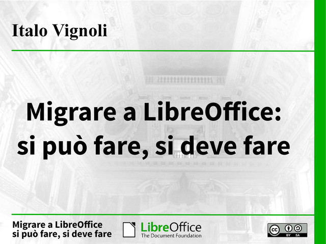 •Migrare a LibreOffice si può fare e (tranne in casi eccezionali e motivati) si deve fare, almeno nel caso in cui occorra rinnovare le licenze del “vecchio” •Rivoluzione copernicana: soluzioni proprietarie sono un'eccezione