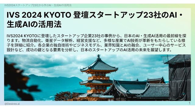 IVS2024スタートアップ23社から学ぶAI・生成AIの活用法(KYOTO LAUNCHPAD & GenerativeAI Pitch):