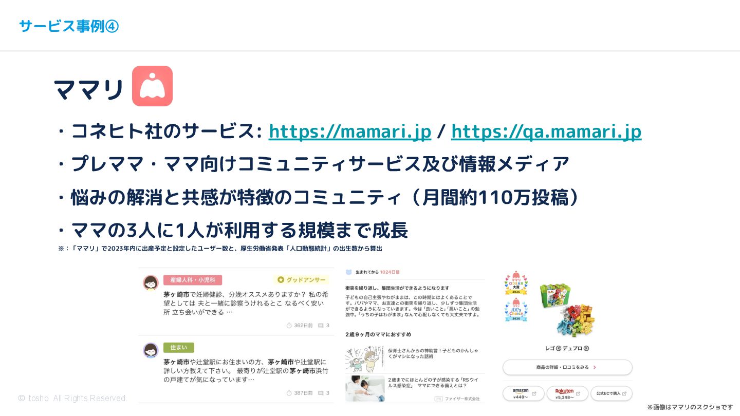 © itosho All Rights Reserved. サービス事例④ ママリ ・コネヒト社のサービス: https://mamari.jp /