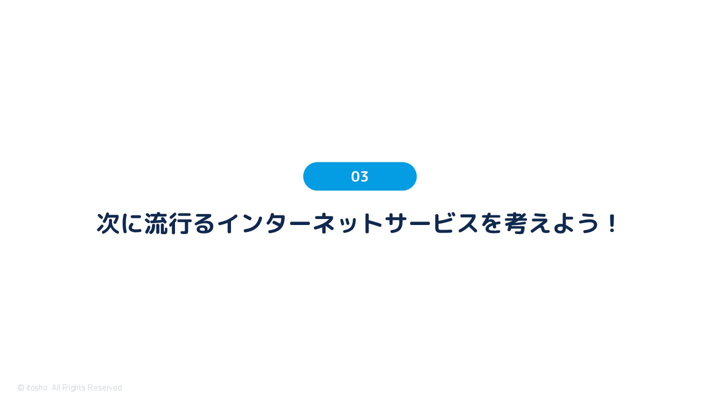 © itosho All Rights Reserved. 次に流行るインターネットサービスを考えよう! 03