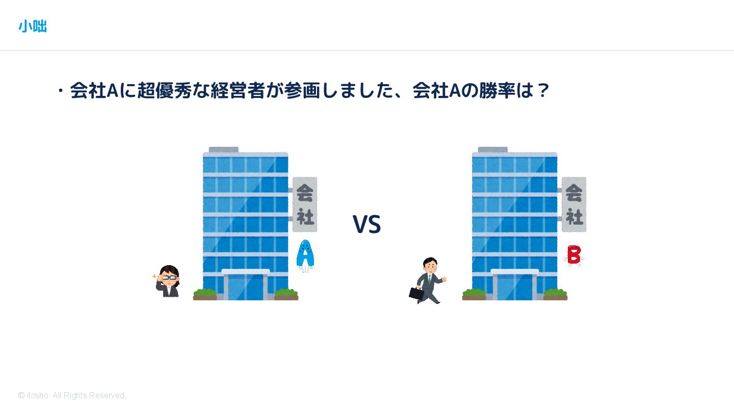 © itosho All Rights Reserved. ・会社Aに超優秀な経営者が参画しました、会社Aの勝率は? 小咄 VS