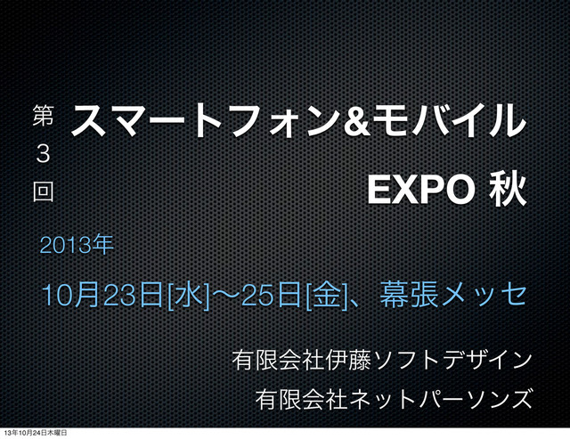 εϚʔτϑΥϯ&ϞόΠϧ EXPO ळ 2013 10݄23[ਫ]ʙ25[ۚ]ɺນுϝοη ༗ݶձࣾҏ౻ιϑτσβΠϯ ༗ݶձࣾωοτύʔιϯζ ୈ ̏ ճ
