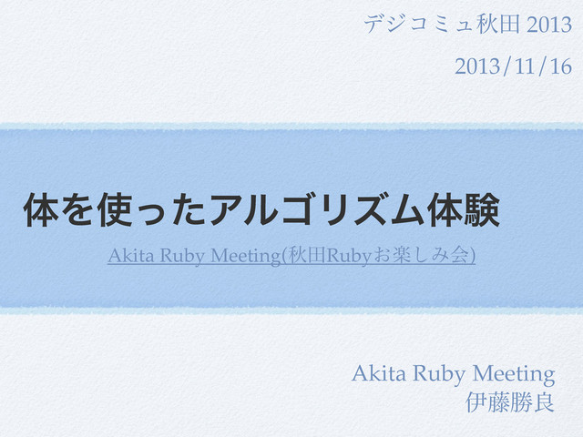 デジコミュ秋田 2013 のAkita Ruby Meetingの セッションで行いました。