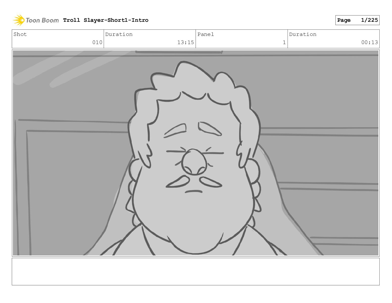 Shot 010 Duration 13:15 Panel 1 Duration 00:13 Troll Slayer-Short1-Intro