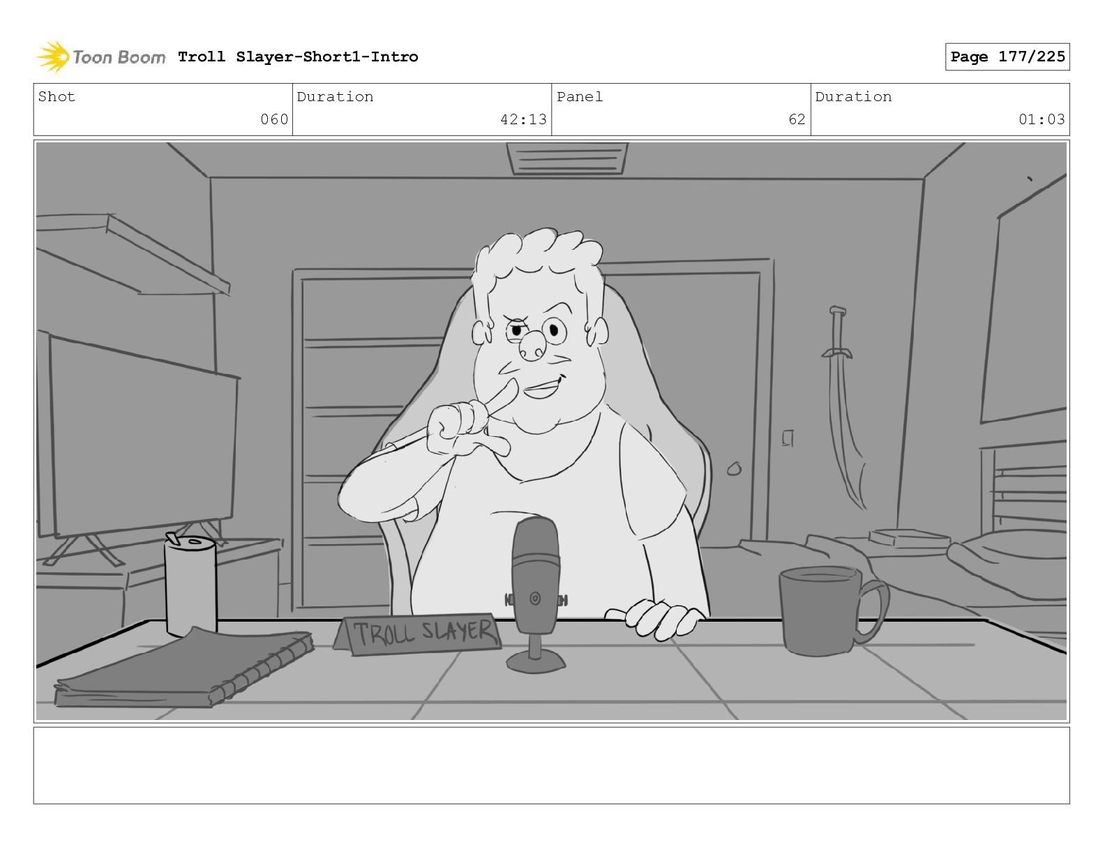 Shot 060 Duration 42:13 Panel 62 Duration 01:03 Troll Slayer-Short1-Intro