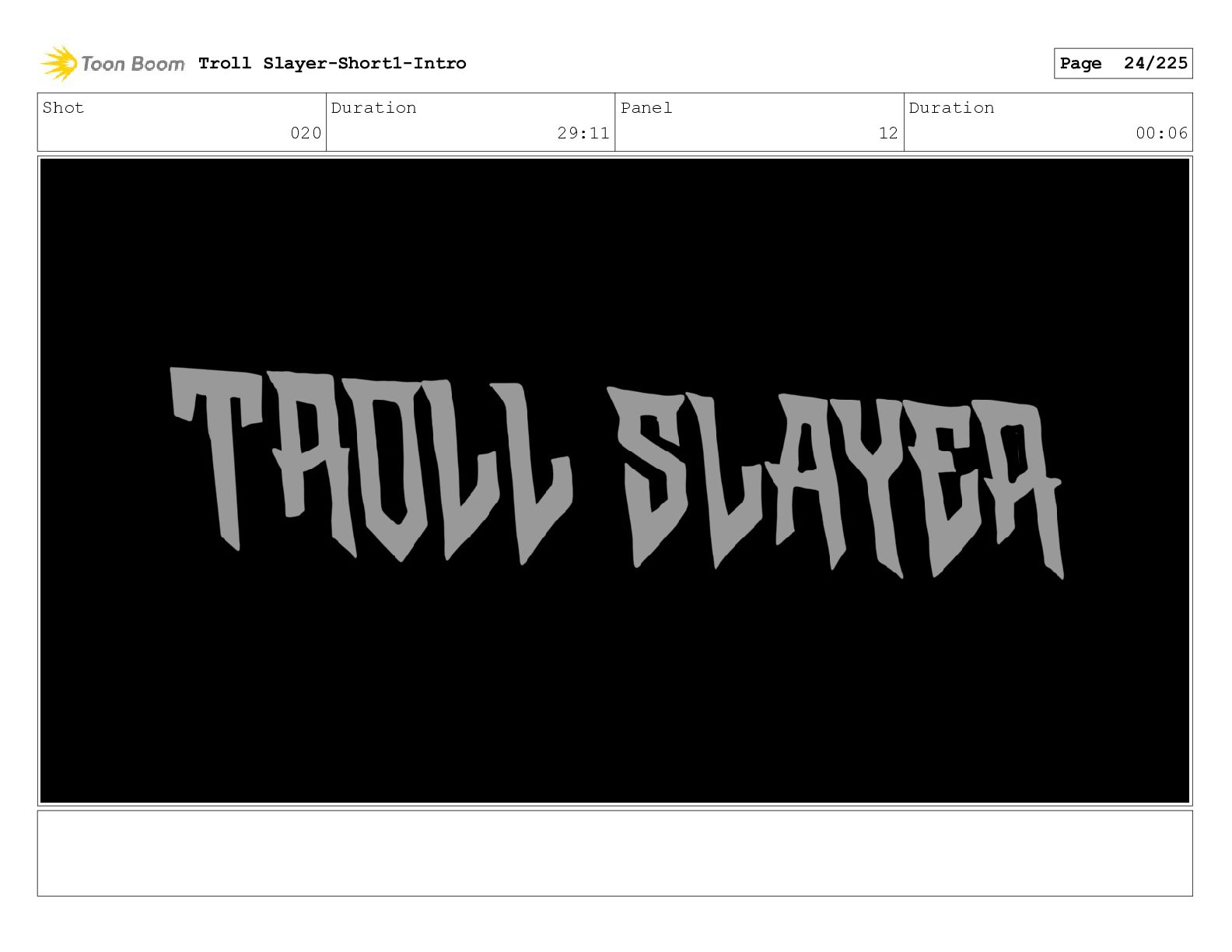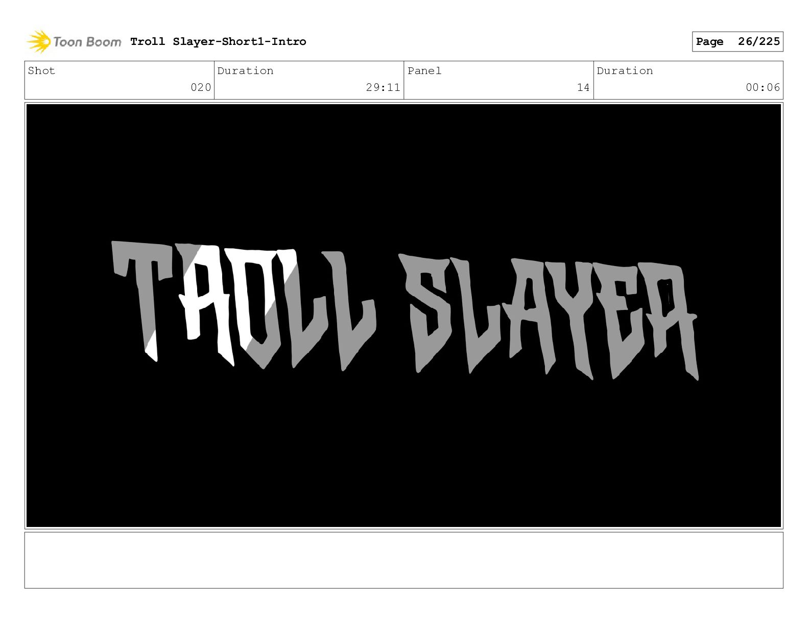 Shot 065 Duration 06:04 Panel 3 Duration 00:06 Troll Slayer-Short1-Intro