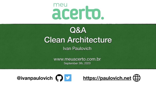 Ports and Adapters Pattern • Test-Driven Design Development (Practices) • Clean Architecture Style • Principles, Patterns and Practices. • Walkthrough an Use Case • Q&A @ivanpaulovich