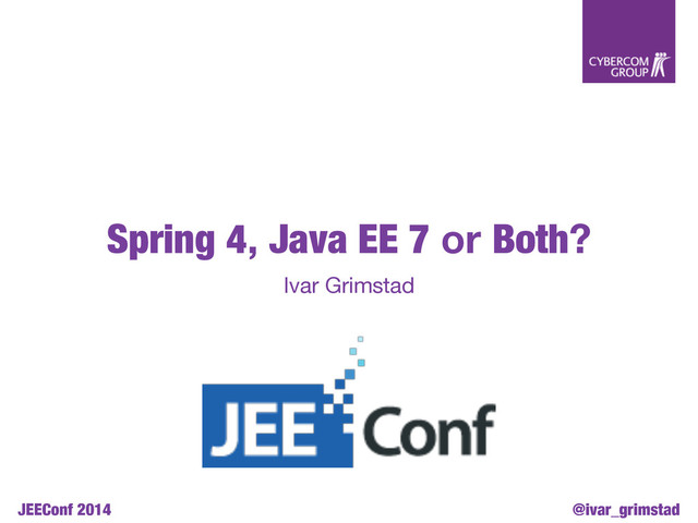 @ivar_grimstad JEEConf 2014 Spring 4, Java EE 7 or Both?