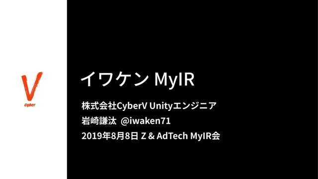 イワケン MyIR 株式会社CyberV Unityエンジニア 岩崎謙汰 @iwaken 2019年8⽉8⽇ Z & AdTech