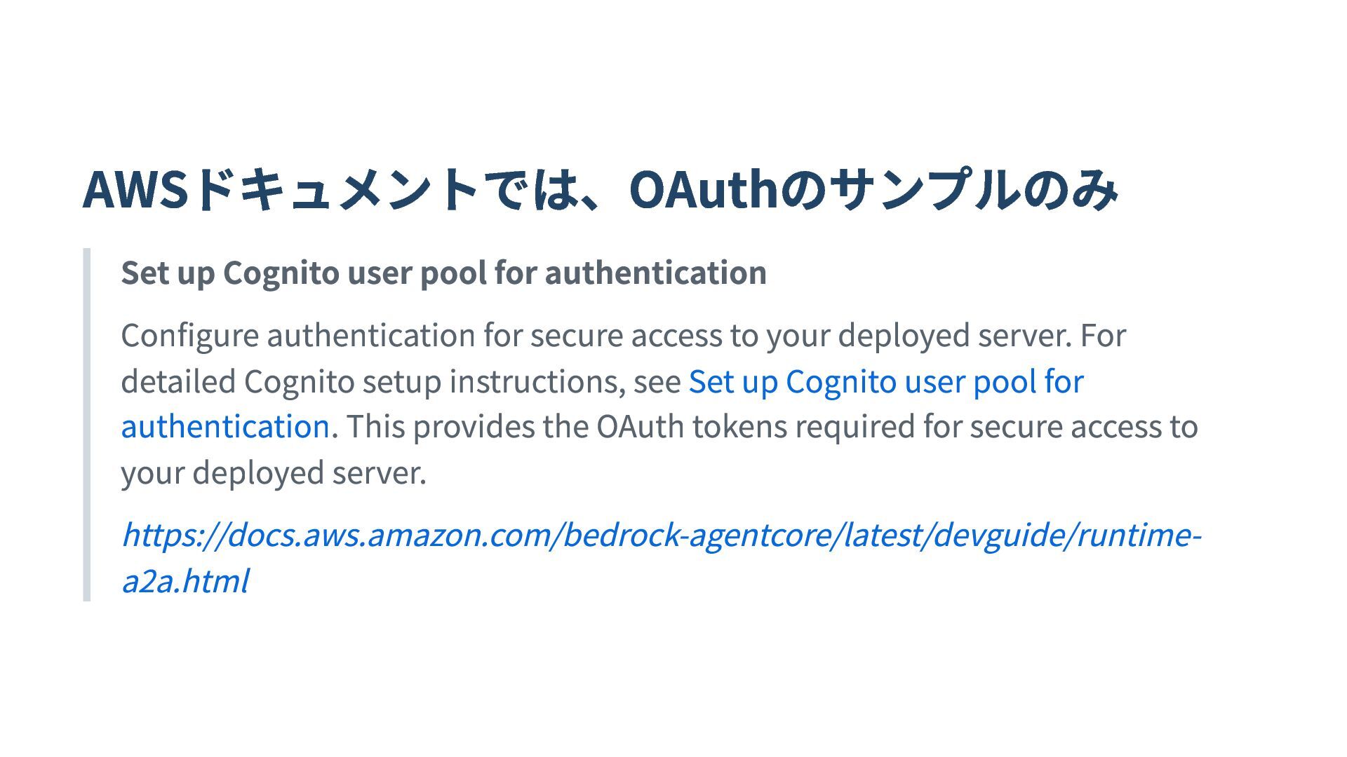 for secure access to your deployed server. For detailed Cognito setup instructions, see Set up Cognito user pool for authentication. This provides the OAuth tokens required for secure access to your deployed server. https://docs.aws.amazon.com/bedrock-agentcore/latest/devguide/runtime- a2a.html