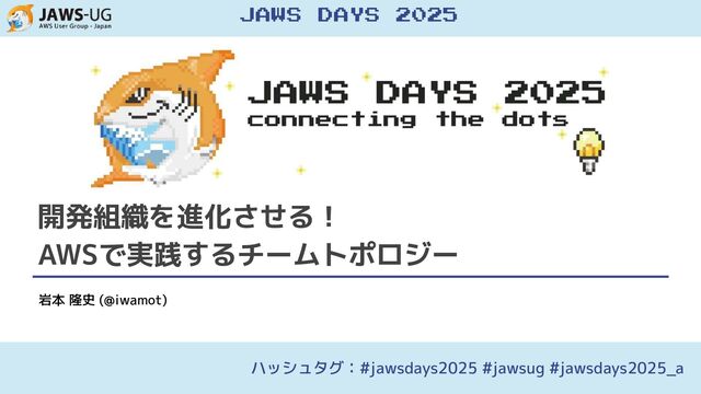 開発組織を進化させる! AWSで実践するチームトポロジー 岩本 隆史 (@iwamot) ハッシュタグ:#jawsdays2025 #jawsug #jawsdays2025_a