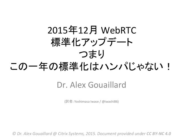 http://www.slideshare.net/alexpiwi5/2015-q4-webrtc-standards-update