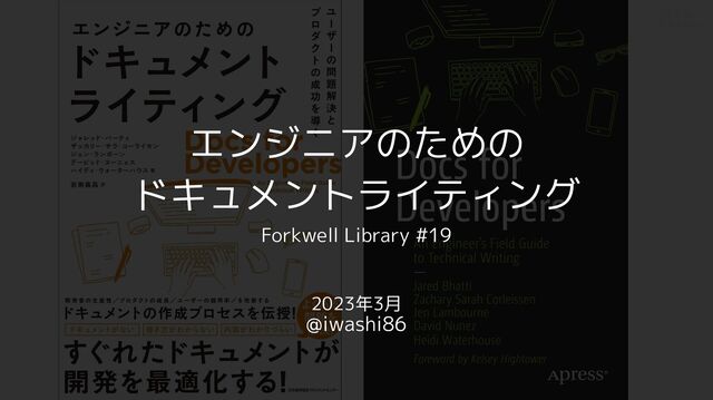 2023年3月17日に開催されたイベント「エンジニアのためのドキュメントライティング - Forkwell Library #19」の登壇資料です。