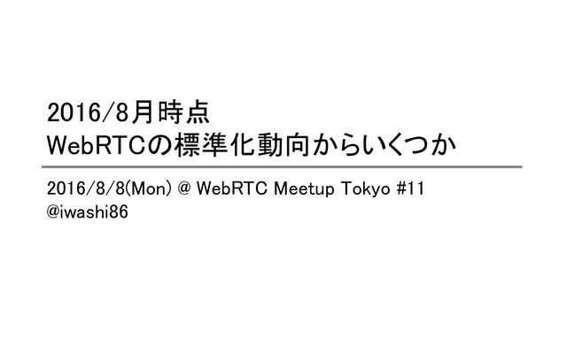 2016/8月時点 WebRTCの標準化動向からいくつか 2016/8/8(Mon) @ WebRTC Meetup Tokyo #11 @iwashi86