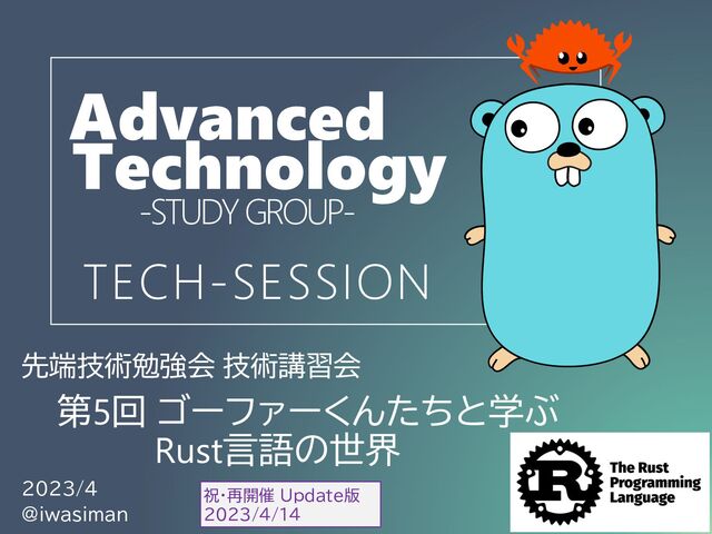先端技術勉強会 技術講習会 2023/4 @iwasiman Advanced -STUDY GROUP- 第5回 ゴーファーくんたちと学ぶ Rust言語の世界