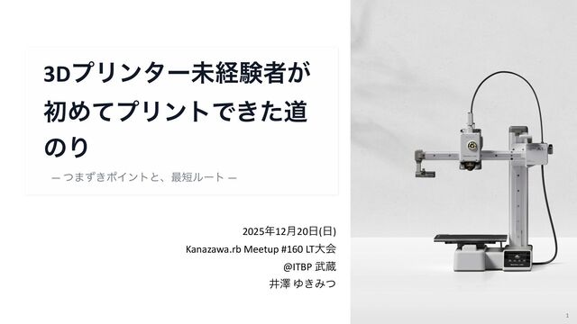 3DϓϦϯλʔະܦݧऀ͕ ॳΊͯϓϦϯτͰ͖ͨಓ ͷΓ — ͭ·͖ͣϙΠϯτͱɺ࠷ϧʔτ — 1 202512݄20() Kanazawa.rb Meetup