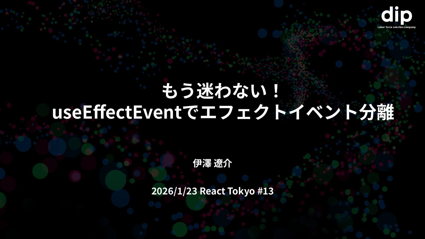 もう迷わない! useEffectEventでエフェクトイベント分離 伊澤 遼介 2026/1/23 React Tokyo #13