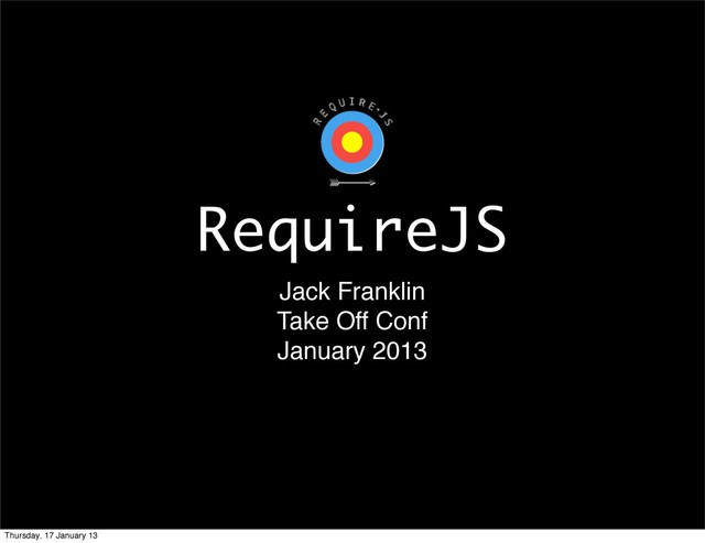 can be dynamically loaded in only when required • No more messing around with the order of script tags • Better organised, modular code (separation of concerns) Thursday, 17 January 13