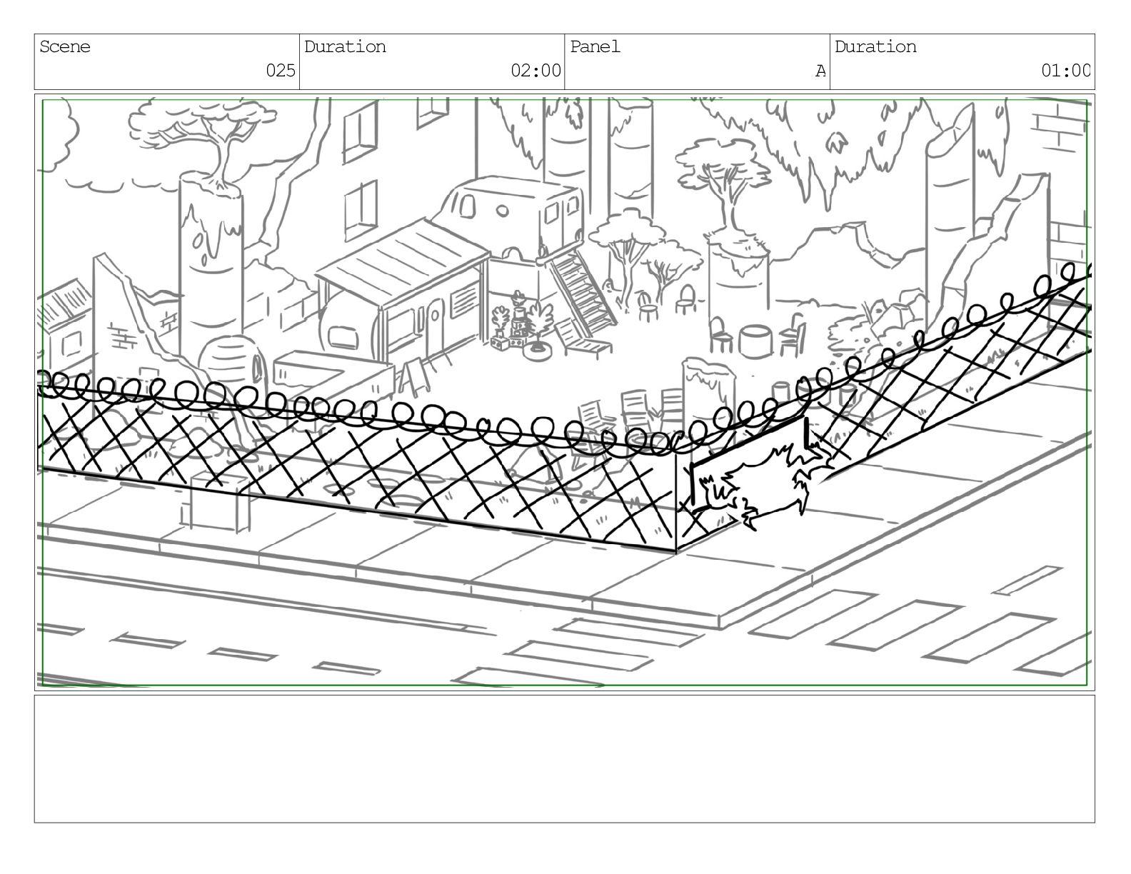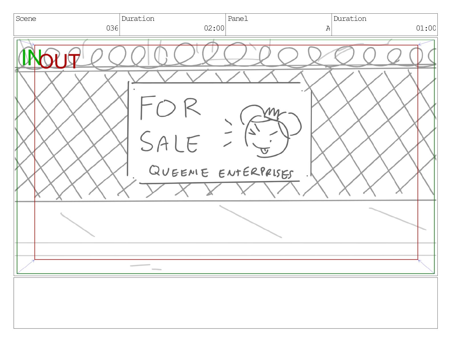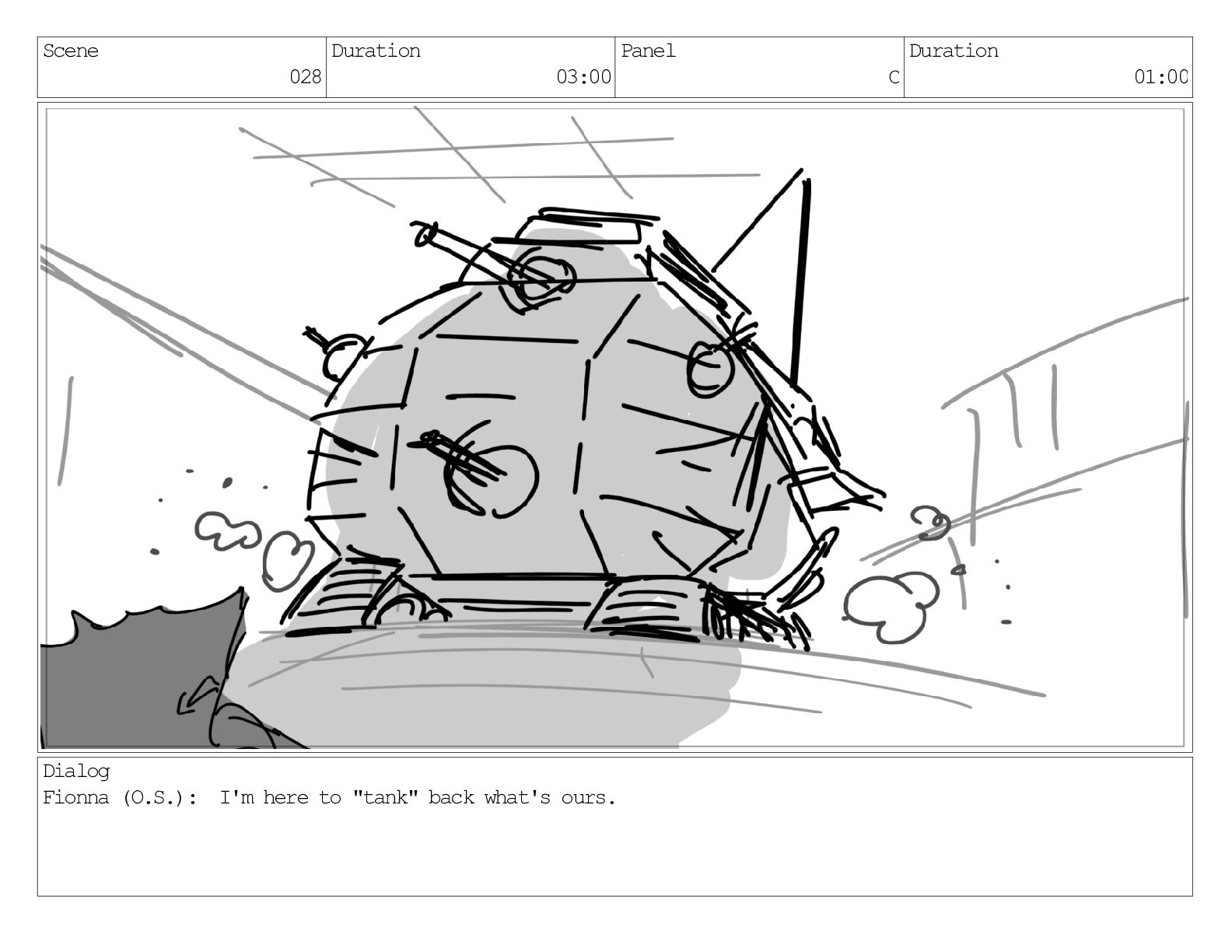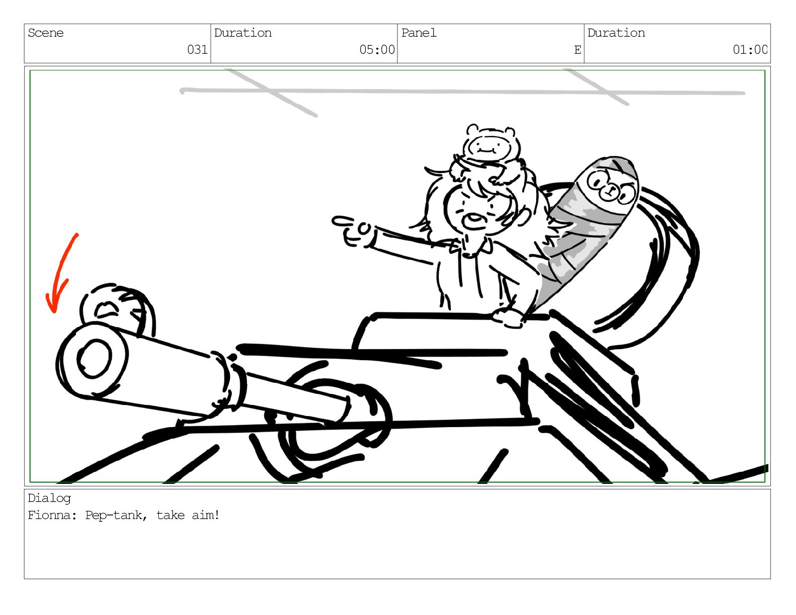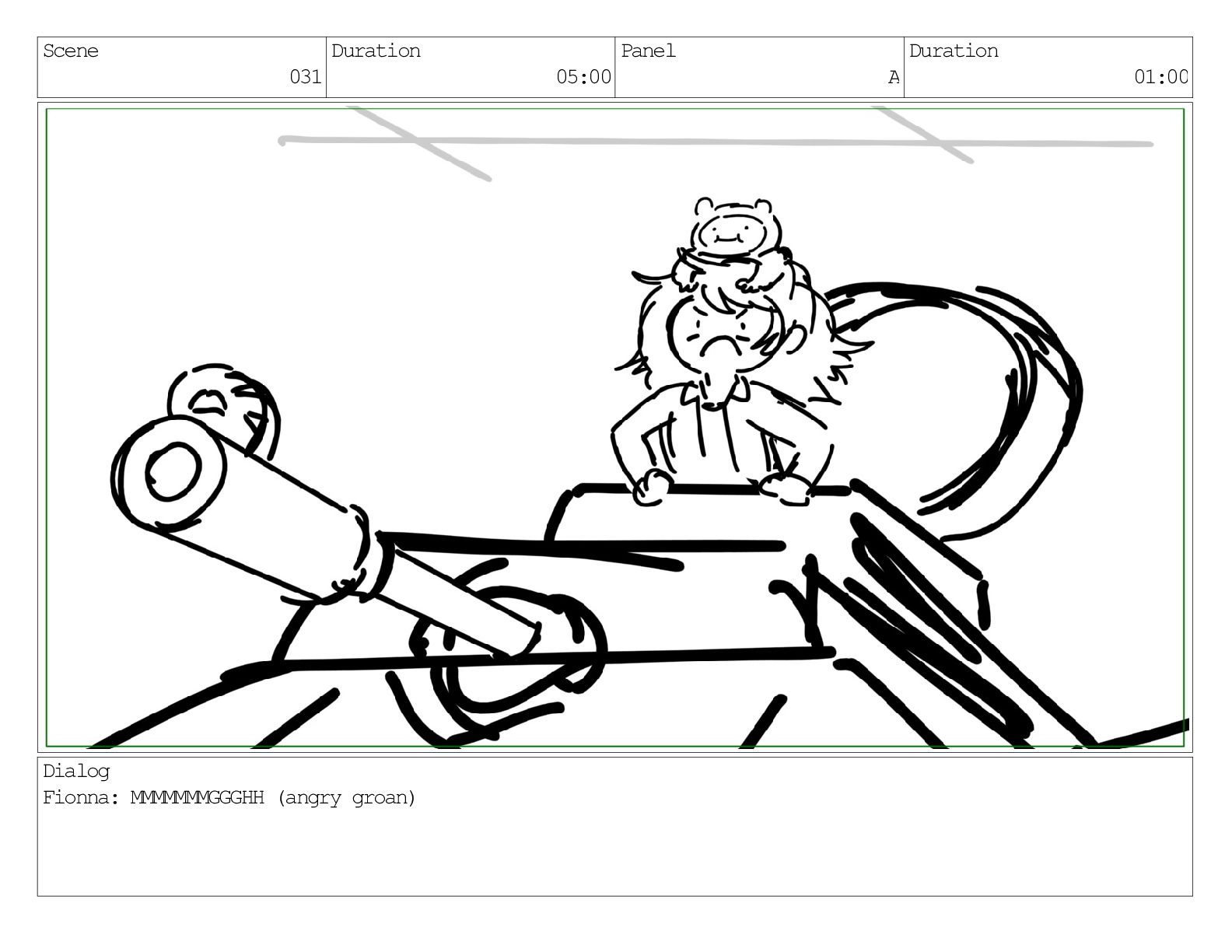 Scene 031 Duration 05:00 Panel A Duration 01:00 Dialog Fionna: