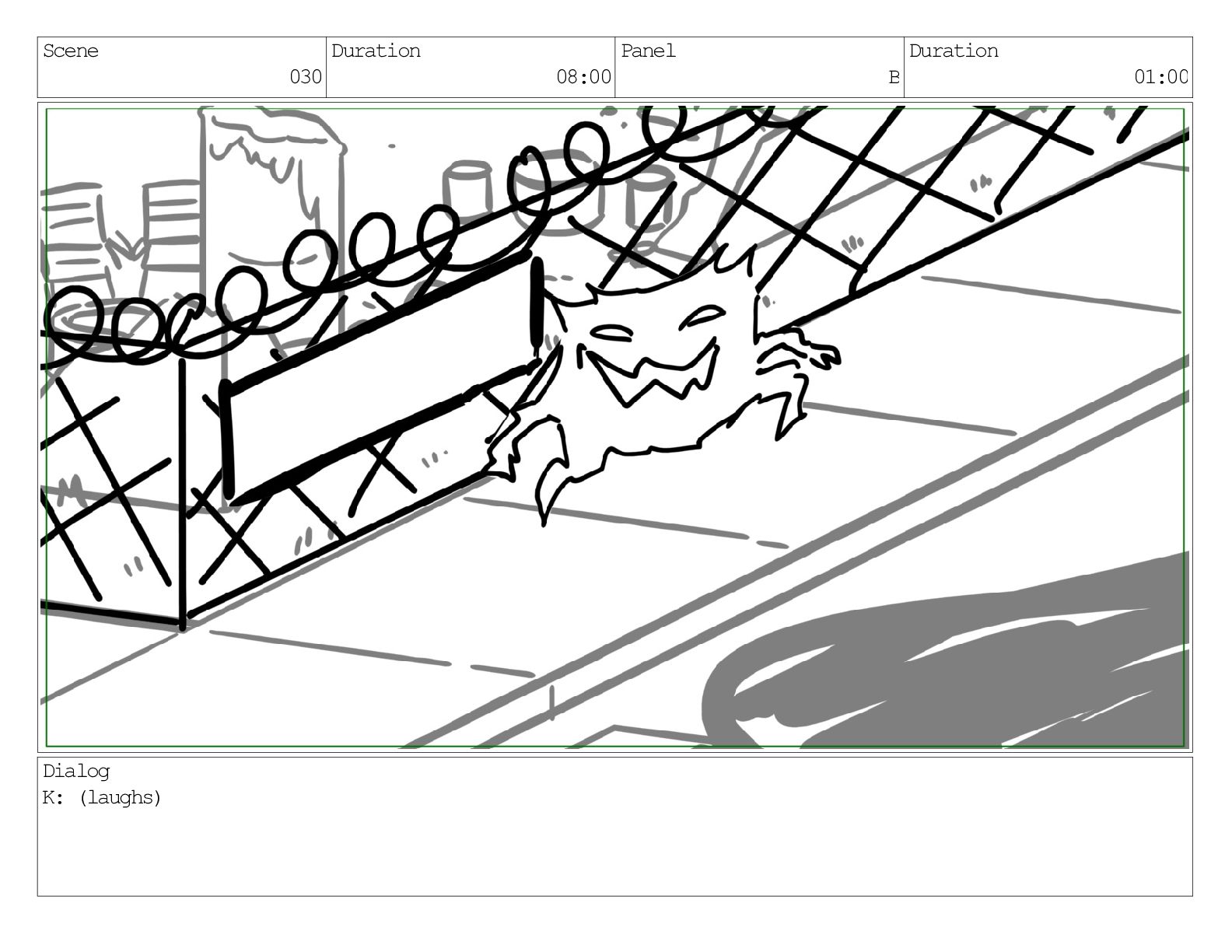 Scene 032 Duration 08:00 Panel B Duration 01:00