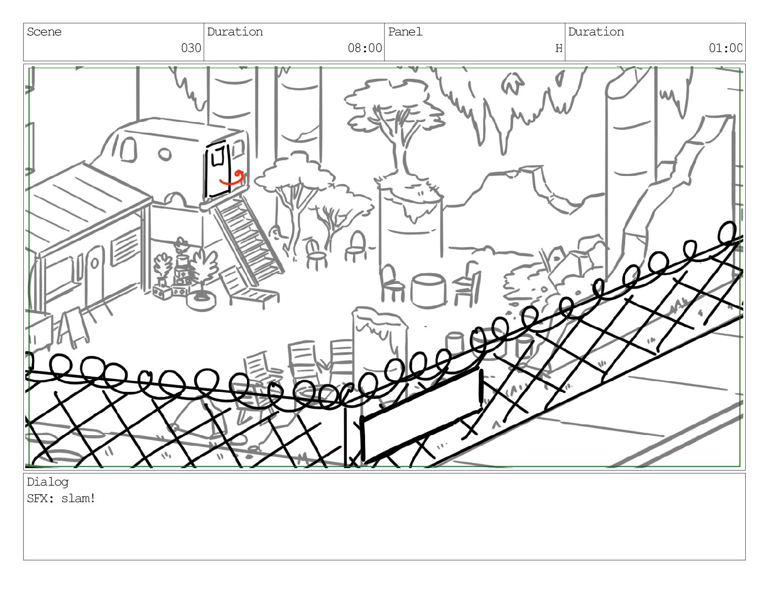 Scene 030 Duration 08:00 Panel H Duration 01:00 Dialog SFX: