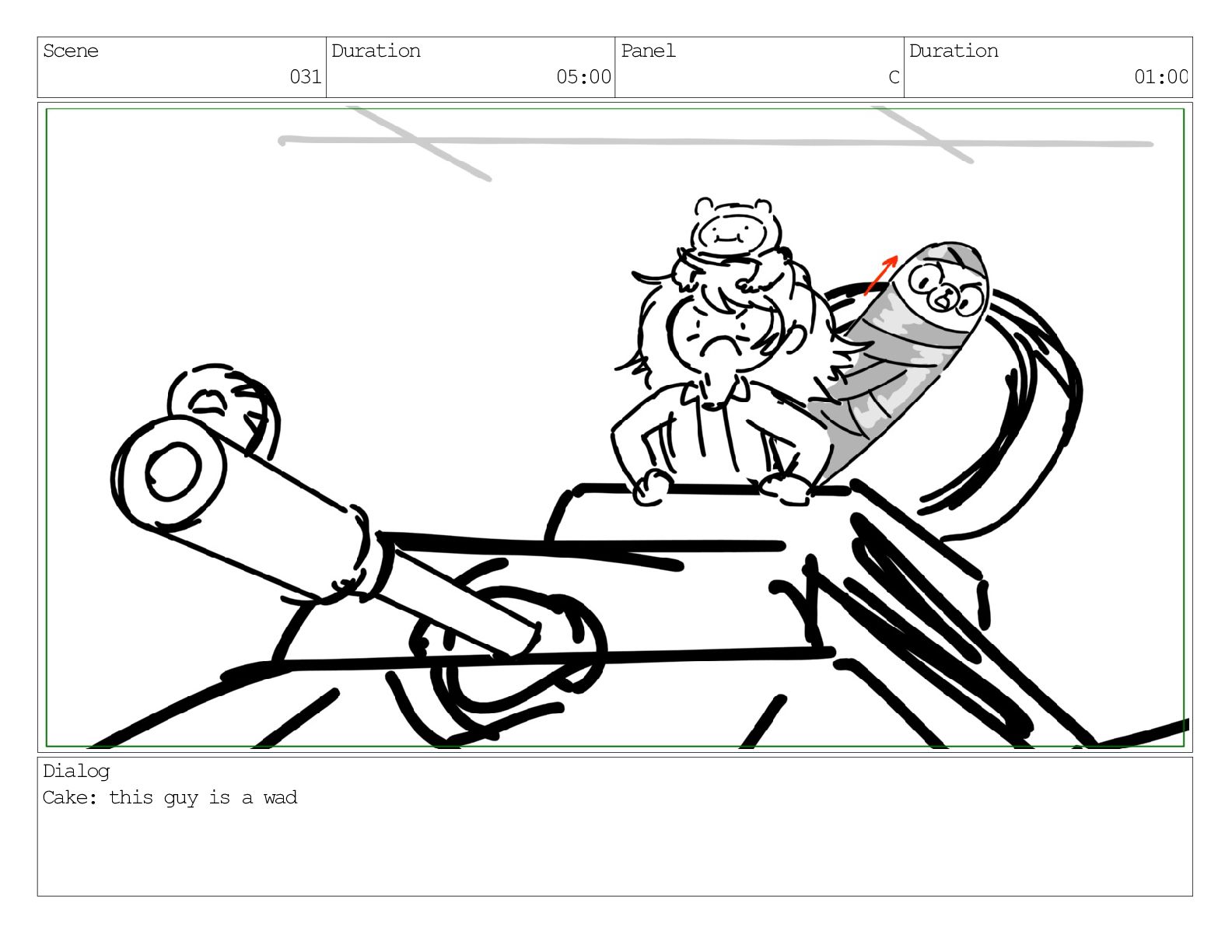 Scene 031 Duration 05:00 Panel C Duration 01:00 Dialog Cake: