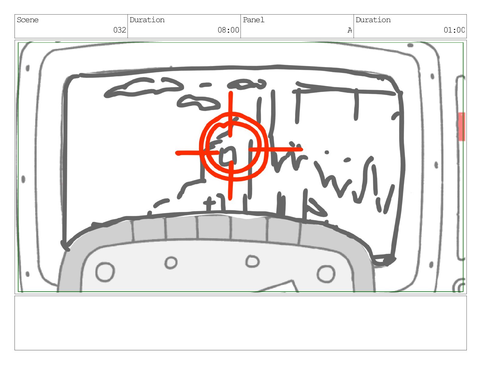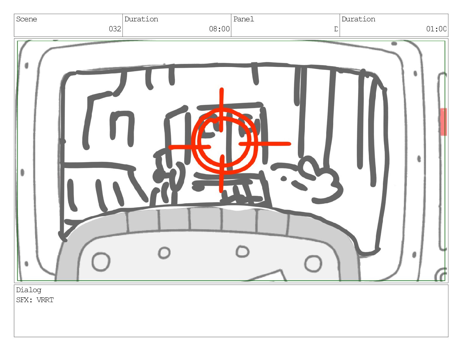 Scene 032 Duration 08:00 Panel A Duration 01:00