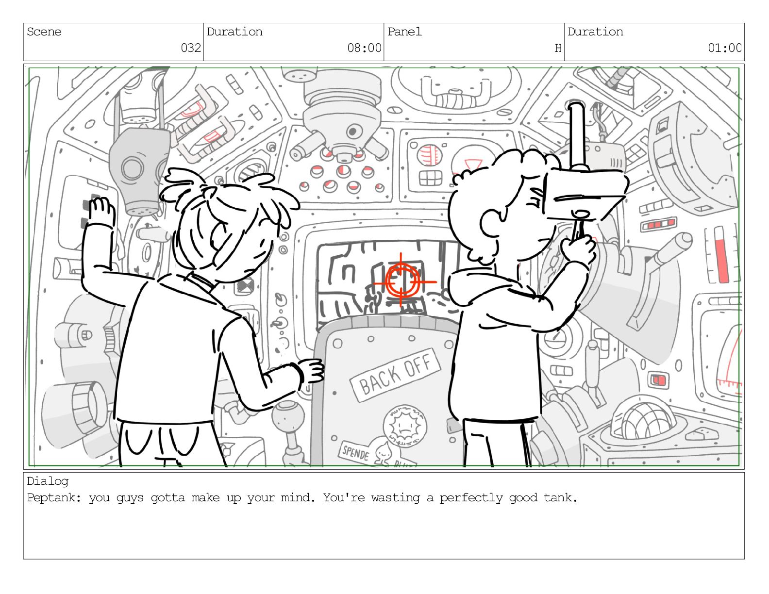 Scene 032 Duration 08:00 Panel H Duration 01:00 Dialog Peptank: