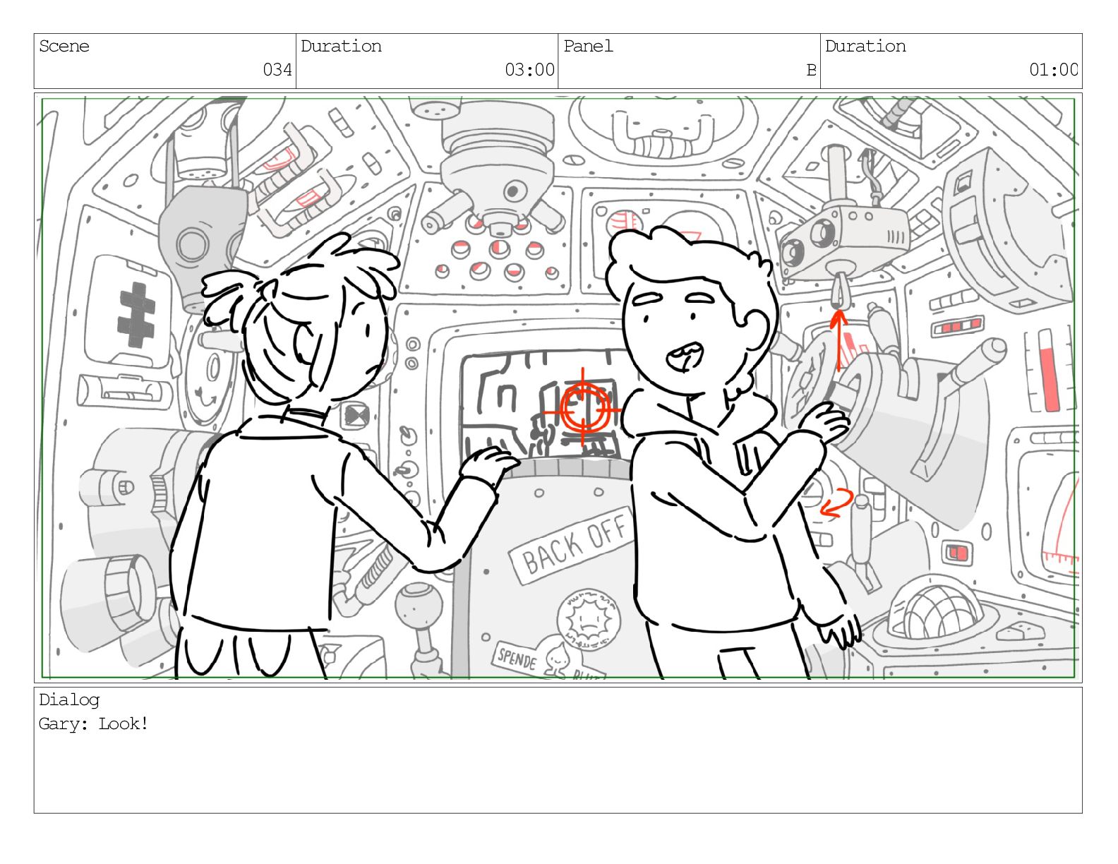 Scene 034 Duration 03:00 Panel B Duration 01:00 Dialog Gary: