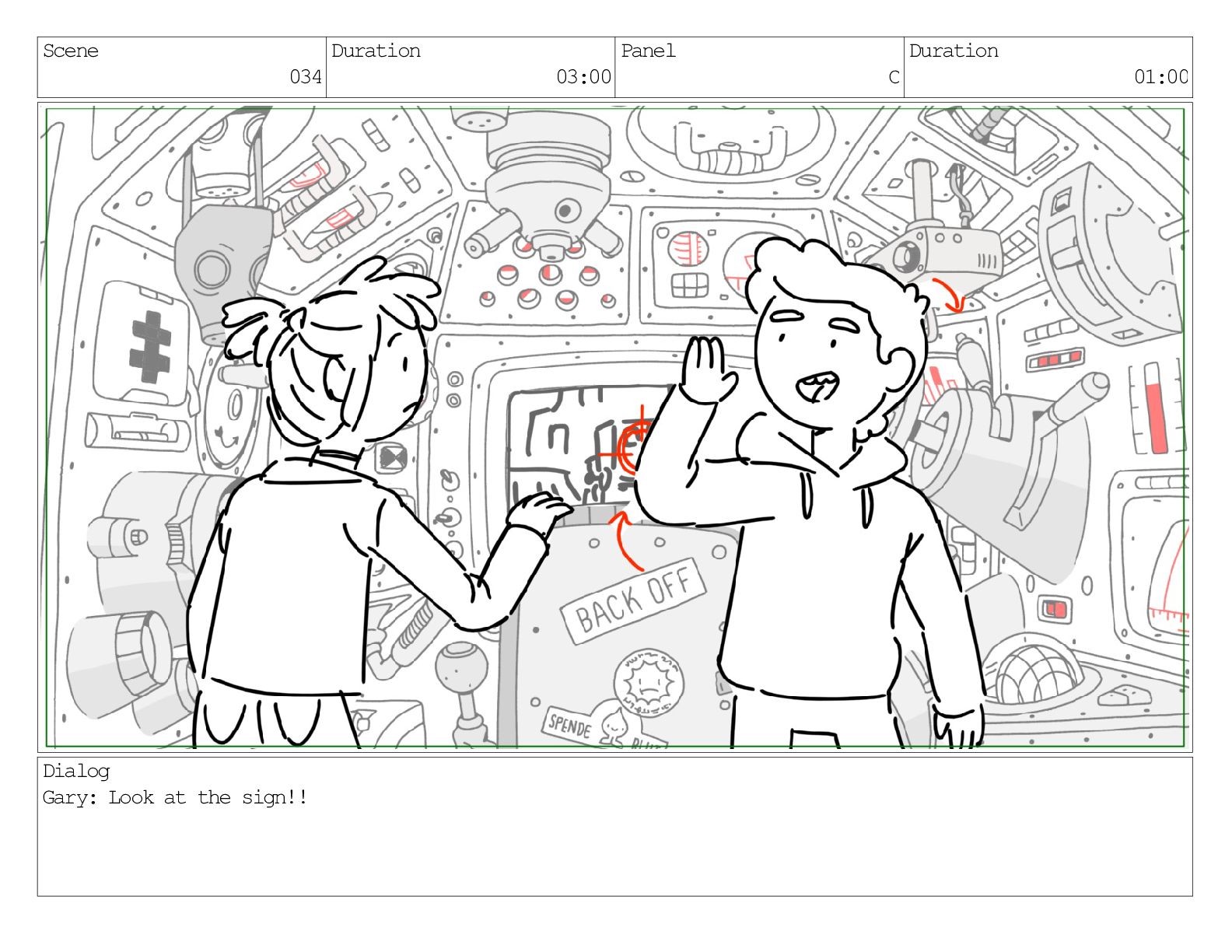 Scene 034 Duration 03:00 Panel C Duration 01:00 Dialog Gary: