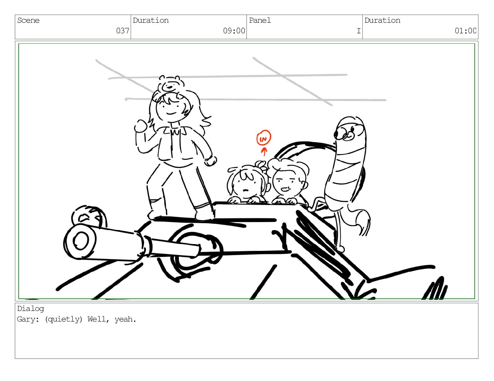 Scene 037 Duration 09:00 Panel I Duration 01:00 Dialog Gary: