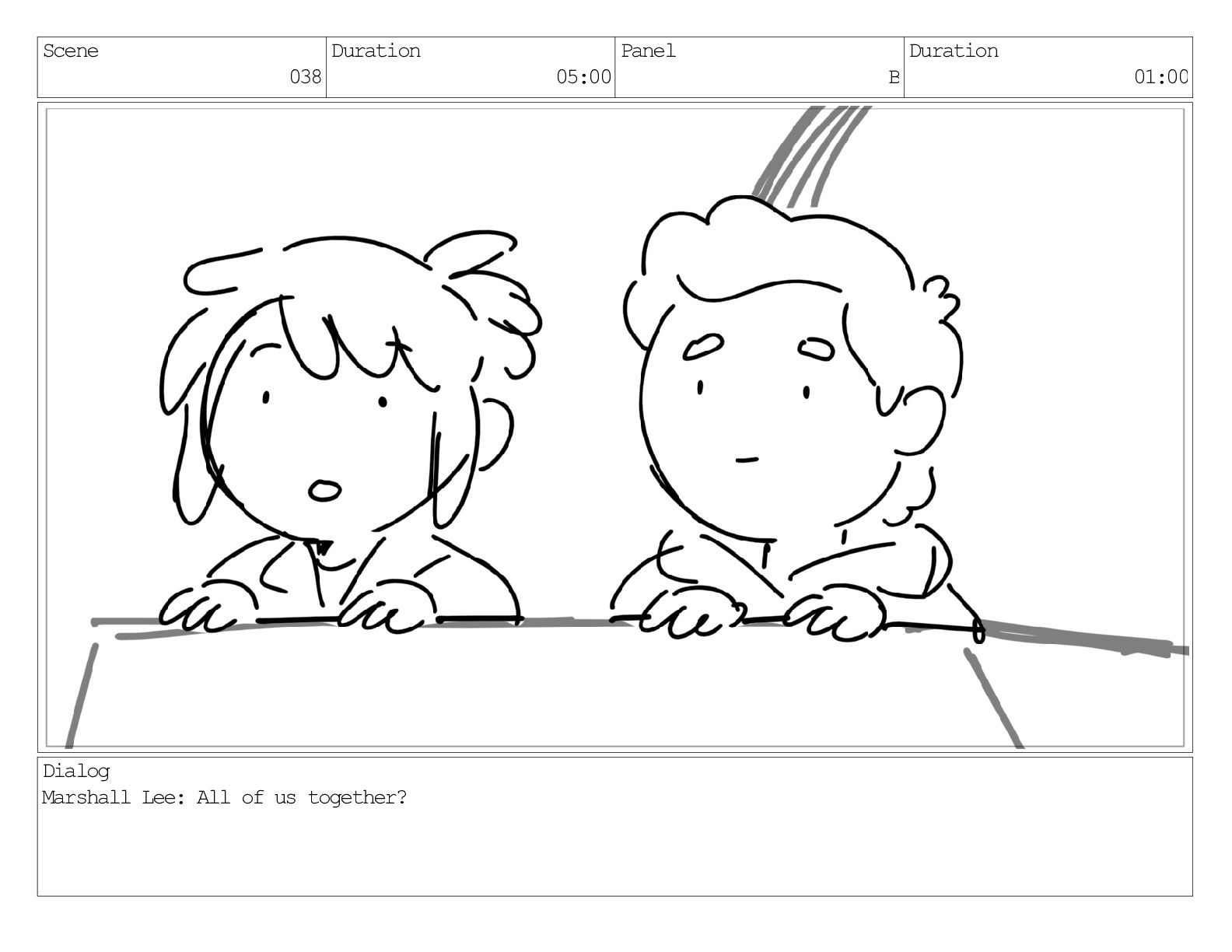 Scene 038 Duration 05:00 Panel B Duration 01:00 Dialog Marshall